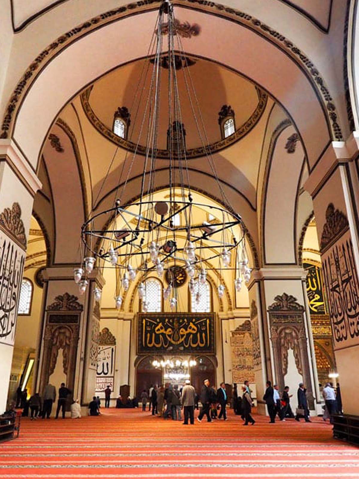 Bursa’nın başka bir önemli yapısı Yıldırım İlçesi’nde olan Emir Sultan Camii. Yıldırım Bayezid’in kızı eşi adına yaptırmış. Camiinin yapımı 14 yy. da tamamlanmış ve hala etkin şekilde kullanılıyor. Bu eserde de Osmanlı döneminin en önemli sanatlarından çiniye rastlayabilirsiniz. Eskiden Bursa’daki düğün ve sünnetlerden önce bu Emir Sultan Cami’ye uğranıp dua etme geleneği olsa da günümüzde böyle bir adet kalmamış.